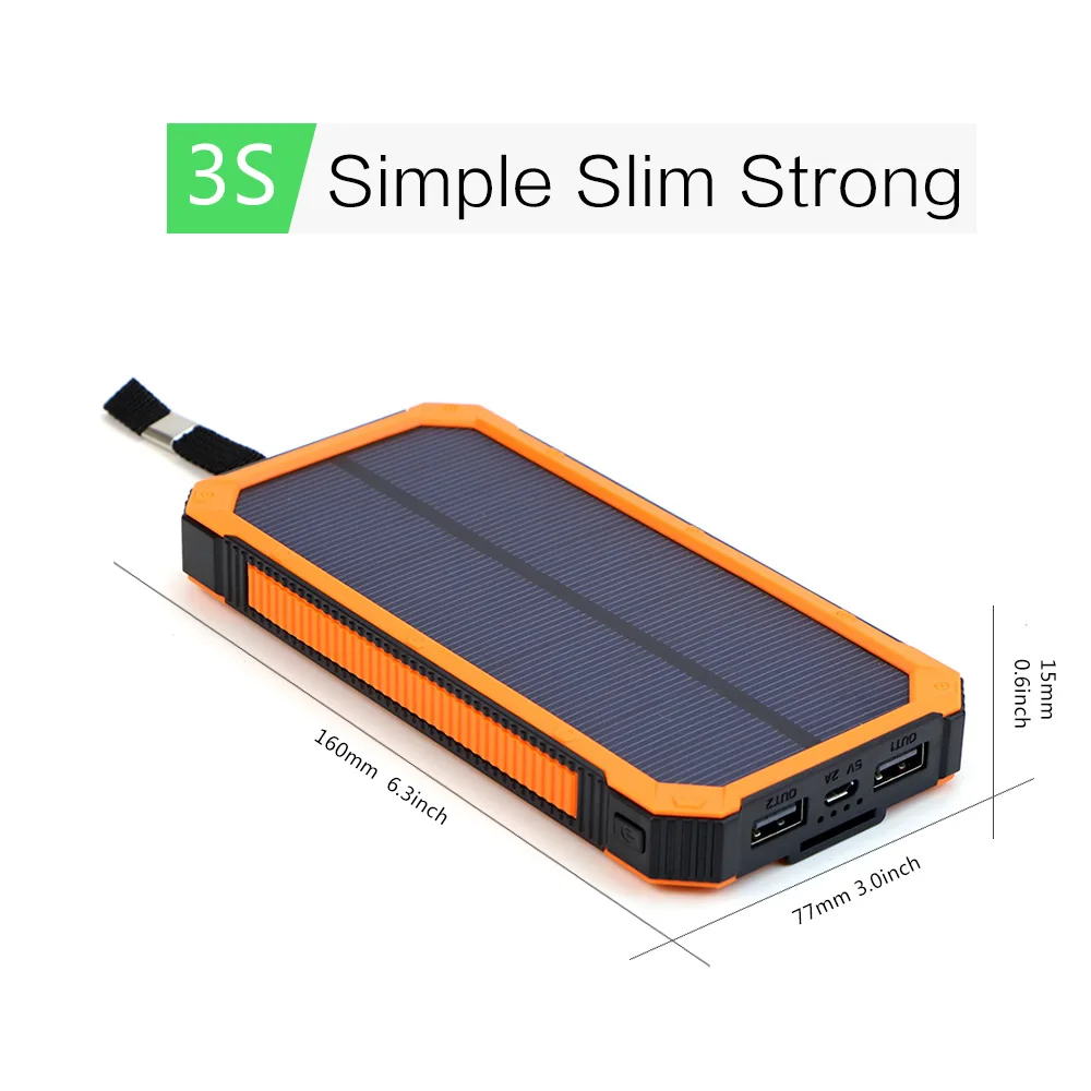 15000mAh Portable Solar Power Bank Outdoor External Battery Charger for iPhone Samsung Huawei Smart