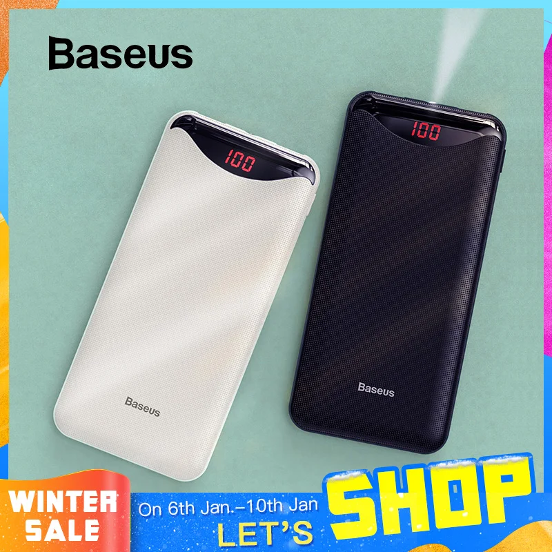 Baseus Slim 10000mAh Power Bank Dual USB Powerbank with Flashlight for iPhone 11 Pro Samsung Mini P