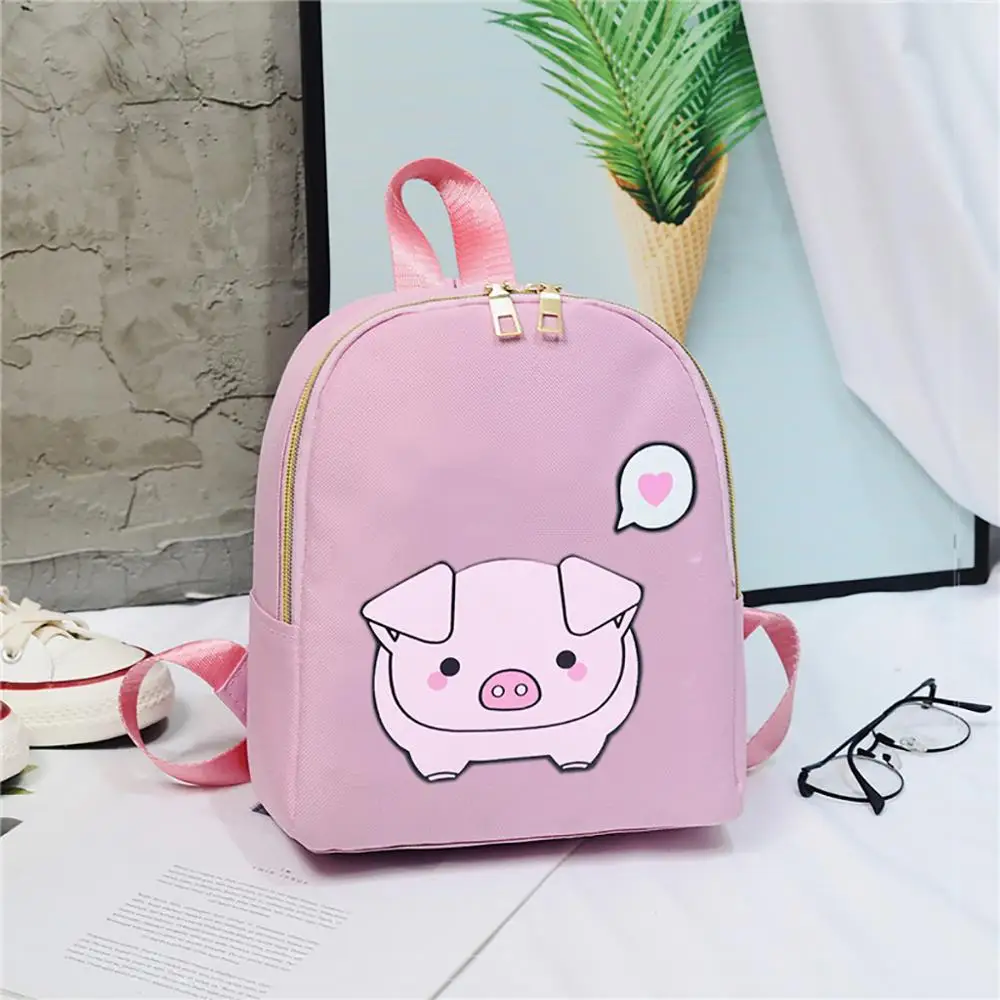 BEST Women Rucksack Teenagers Backpack Nylon School Bags for Girls Cartoon Pig Square Satchel Light Shou