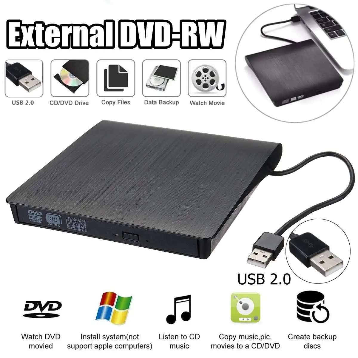 External DVD CD Reader Optical Drive USB 2.0 DVD-RW CD-RW Player Burner Slim Portable Reader Record